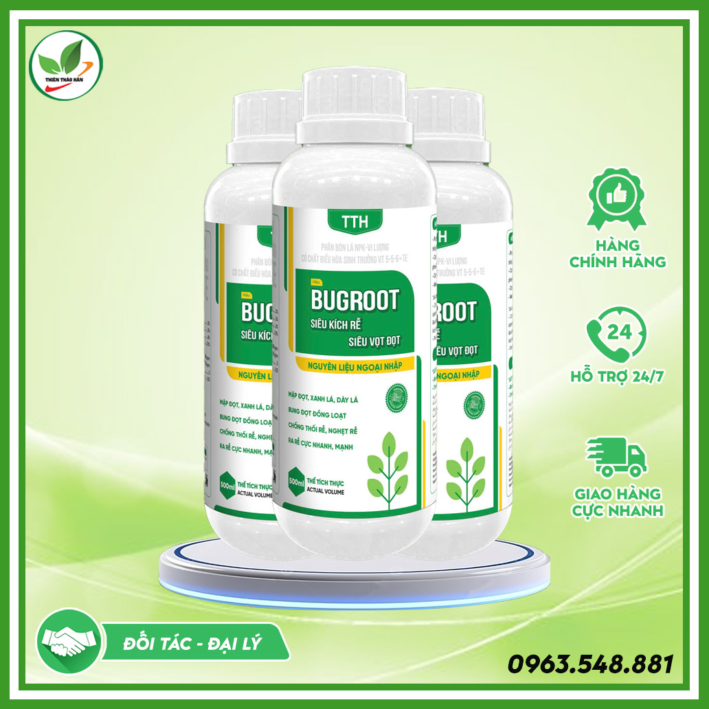 Bugroot là dòng phân bón lá NPK, vi lượng, chất điều hòa sinh trưởng VT 5-5-6+TE được sản xuất từ nguyên liệu ngoại nhập có độ tinh khiết cao. Sản phẩm được thiết kế chuyên biệt cho các giai đoạn cây cần: