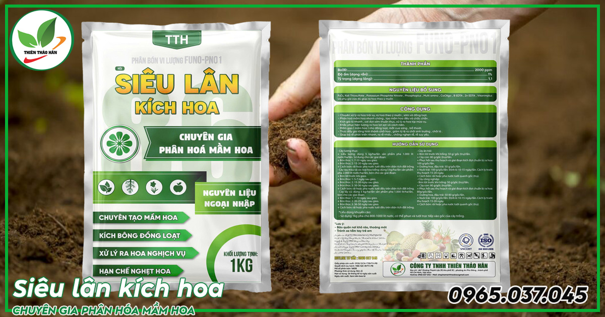 Siêu Lân Kích Hoa là giải pháp đáng tin cậy cho bà con muốn xử lý ra hoa trái vụ, điều khiển thời điểm ra hoa hoặc tăng tỷ lệ đậu trái. Với công thức vi lượng, trung lượng đặc biệt, sản phẩm mang đến khả năng siêu lân tạo mầm hoa, giúp cây phát triển đồng đều, khỏe rễ, sáng mắt cua và cho hoa đẹp, mạnh.