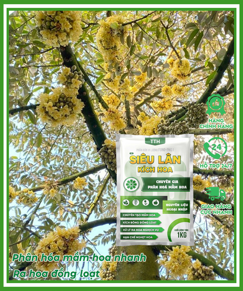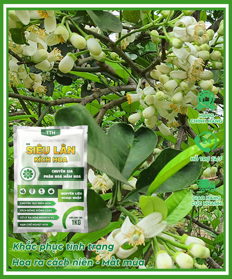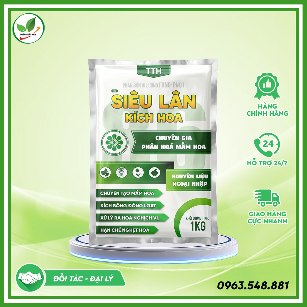 Để giải quyết vấn đề này, Siêu Lân Kích Hoa đã trở thành một trong những giải pháp chuyên sâu, hỗ trợ mạnh mẽ quá trình phân hóa mầm hoa và kích thích cây ra hoa theo ý muốn. Sản phẩm được bà con nhiều vùng tin dùng nhờ khả năng siêu lân tạo mầm hoa, giúp cây hình thành mầm hoa nhanh, mắt cua sáng và bung hoa mạnh mẽ đúng thời điểm.